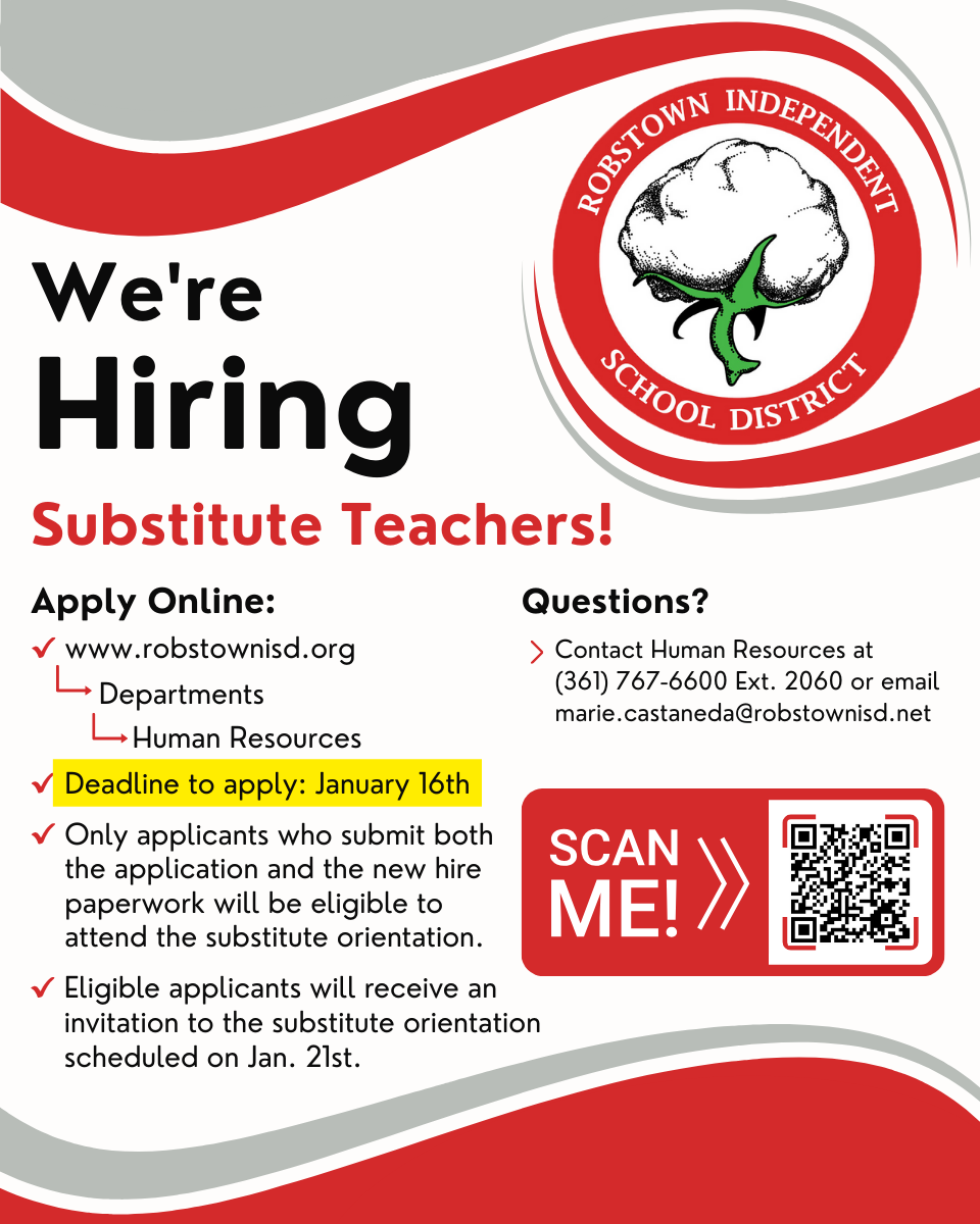 Robstown Independent School District is now accepting applications for substitute teachers for the 2025–2026 school year. As part of an updated hiring process, the district is seeking dependable and passionate individuals who are ready to support students and campuses across Robstown ISD.