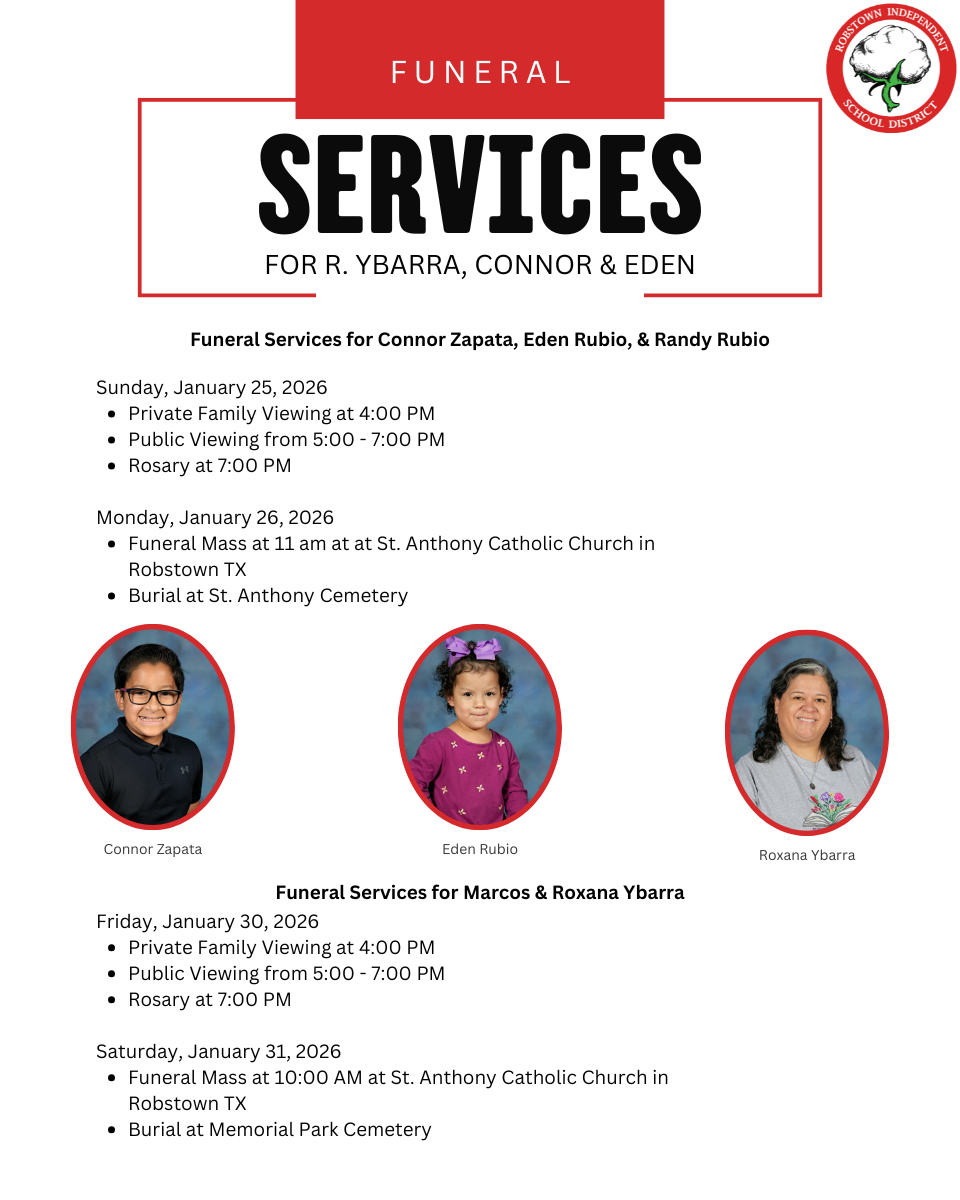 Robstown ISD is grateful for the many memories that Mrs. Ybarra, Connor and Eden left with us. We will cherish these memories and hold them dear to our hearts.