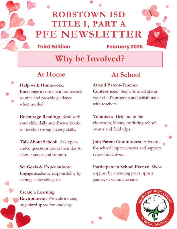 Robstown ISD Invites Families to Join Parent & Family Engagement PFE program empowers parents to get involved in campus life, support teachers, and help plan events throughout the school year.